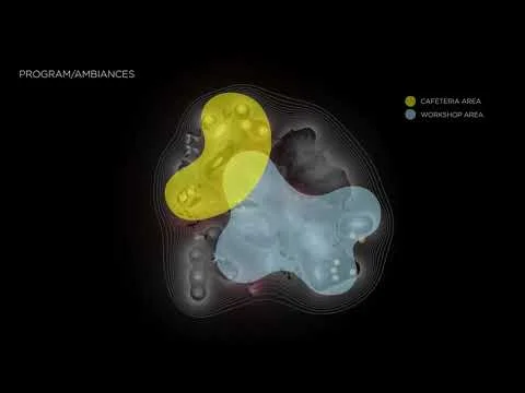To assist us with the spatial organisation, we generate a vector field. In our system, everything is interconnected and changing one parameter can potentially affect its entirety. The space is conceived as a continuous field of elements, creating clusters and highlights. The field is generated in a way that answers to the organisational and phenomenological requirements of the space.