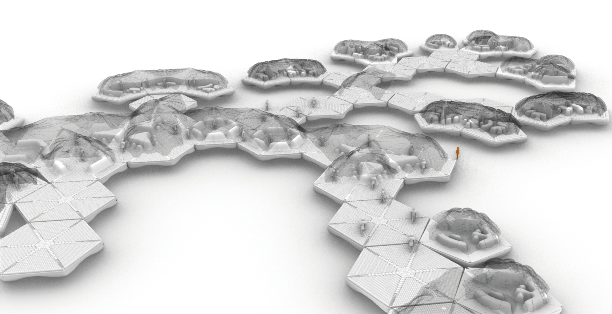 E.S.C. intends to interfere in this undefined territory of the sea by designing a floating infrastructure that provides a safe zone for people threatened by remaining stateless in between foreign borders. This dynamic infrastructure that is mobile, flexible, and time-based consists of a double layered unit, which can generate adaptable inhabitable spaces that can be deployable on land by a sequence of inflation and unfolding strategies. Multiple individual units that behave autonomously aggregate to form a body-plan. During the period of deployment, the units within the system can generate a certain degree of water-based urbanism. A backstage-operating control system handles the interaction between the different units and adapts to any changes of the environmental elements in real-time.