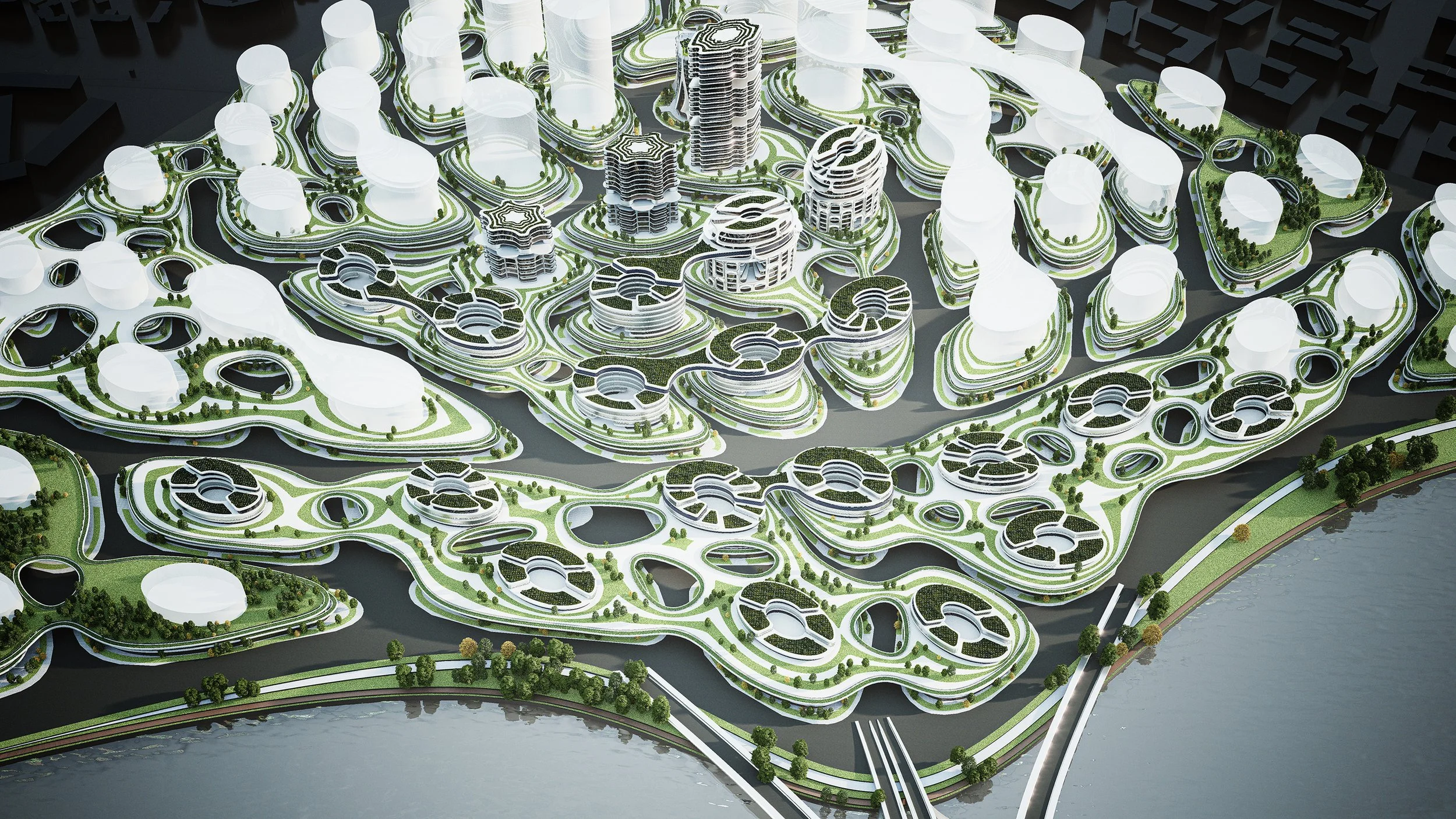 In response to the urgent demands of urban development in the contemporary world, the UpBridge City Project takes the rapid advancement of artificial intelligence as a critical opportunity to propose a novel paradigm for urban growth. Through the methodological concept of “UpBridge,” the project seeks to establish a connective framework between cutting-edge AI technologies and real-world urban development, exploring possible pathways for cities to continuously evolve as intelligent systems. At the level of urban development models, the UpBridge City Project conducts a comparative analysis of two conventional paradigms of urban growth—top-down and bottom-up approaches—and proposes a hybrid model that integrates both. This hybrid model is further translated into a cooperative game-theoretic framework, enabling a structured interpretation of interactions between multiple urban actors. Building upon this game-theoretic foundation, the project adopts a Game AI methodology to construct a Multi-Agent Proximal Policy Optimization (MAPPO) reinforcement learning model for urban growth, based on two interacting agents. Through simple rule-based mechanisms, the model can extrapolate complex real-world urban development dynamics, while leveraging AI autonomy to achieve a mutually beneficial, win–win urban development scenario. At the level of concrete urban design and procedural architectural generation, the UpBridge City Project employs the Signed Distance Field (SDF) method to transform and regulate the latent space of a multi-layer perceptron into a two-dimensional, controllable representation. This approach enables deep learning models to more effectively simulate the progressive evolution of spatial forms. The method is further applied to both horizontal urban architectural variation and the vertical organic integration of different functional floor plans within buildings. Overall, the UpBridge City Project offers an in-depth exploration of the feasibility of AI-driven urban generative design. Methodologically, it proposes a clear technical trajectory that connects artificial intelligence with future urban development. By deploying multiple AI-based techniques across the entire urban design pipeline, the project presents a renewed and comprehensive response to the question of AI for new cities.
